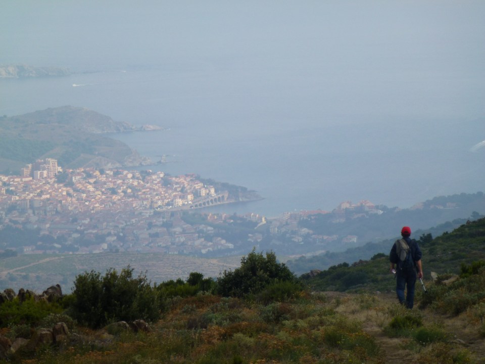 Following the border between the two countries for much of our walk, we start descending towards a point where the sea spreads ahead of us, spearheaded by a final mountain ridge, with Cerbère on the French side, and Portbou on the Spanish. The landscape provides a natural frontier, supposedly, (but not to the Catalans, who feel that both sides belong to them, rather than to either nation state).