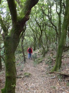 We pass small circular shepherds’ huts, a variation on a theme found all around the Mediterranean as well as in the British Isles, and just over half way, as the sun finally breaks through the cloud, we find ourselves in an enchanted deciduous woods, remarkable for those of us who live on the south-facing flanks of the Pyrenees, but common enough on the north-facing French side.