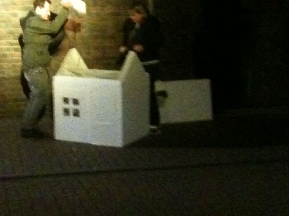 Here is someone trying to set up house under the bridge that runs between Tudor Street and Taff’s Mead Embankment in Cardiff, known – until the council decided to light it up in pretty colours – as Scary Bridge. Actually, my loyal readers will know that this bridge has already featured in Blanco’s Blog before – remember the swan in a bag story? But hang on a minute ….. how on earth are these big people going to fit inside this little house? And why is the man – who looks a little like Stan Laurel, or Rob Howley – wielding the roof in this ferocious manner? Really, I have no idea what is going on here, and that’s the way it should be. It kind of gives me space to improvise.