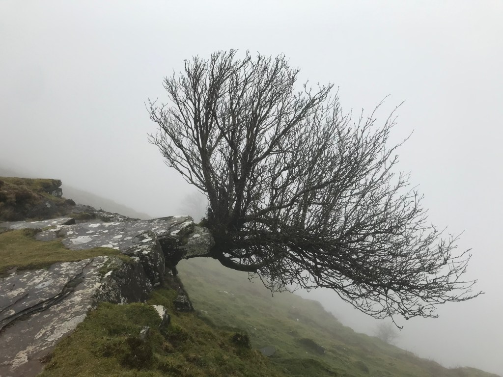For a moment, then, I consider this steep-sided ridge, Crib y Gath, as a mighty ship, plying the deep pasturelands, into a sea of mist. At the far prow, on a rocky outpost, can be seen a single figure — my daughter Rhiannon — unwittingly performing the lead role in a Caspar David Friedrich painting. To the right, the cloud covers the Olchon valley and creeps up the walls of Hatterrall Hill. In that moment everything lies fully within view, circumscribed by mist and as improbable as the hawthorn that sprouts at right angles to the rock. In fact the entire landscape creates its own rules of harmony, lives by its own innate rhythms. There is a symmetry to it all, which I cannot fathom, but which, as the years pass, seems ever more deeply to resemble a kind of consciousness.