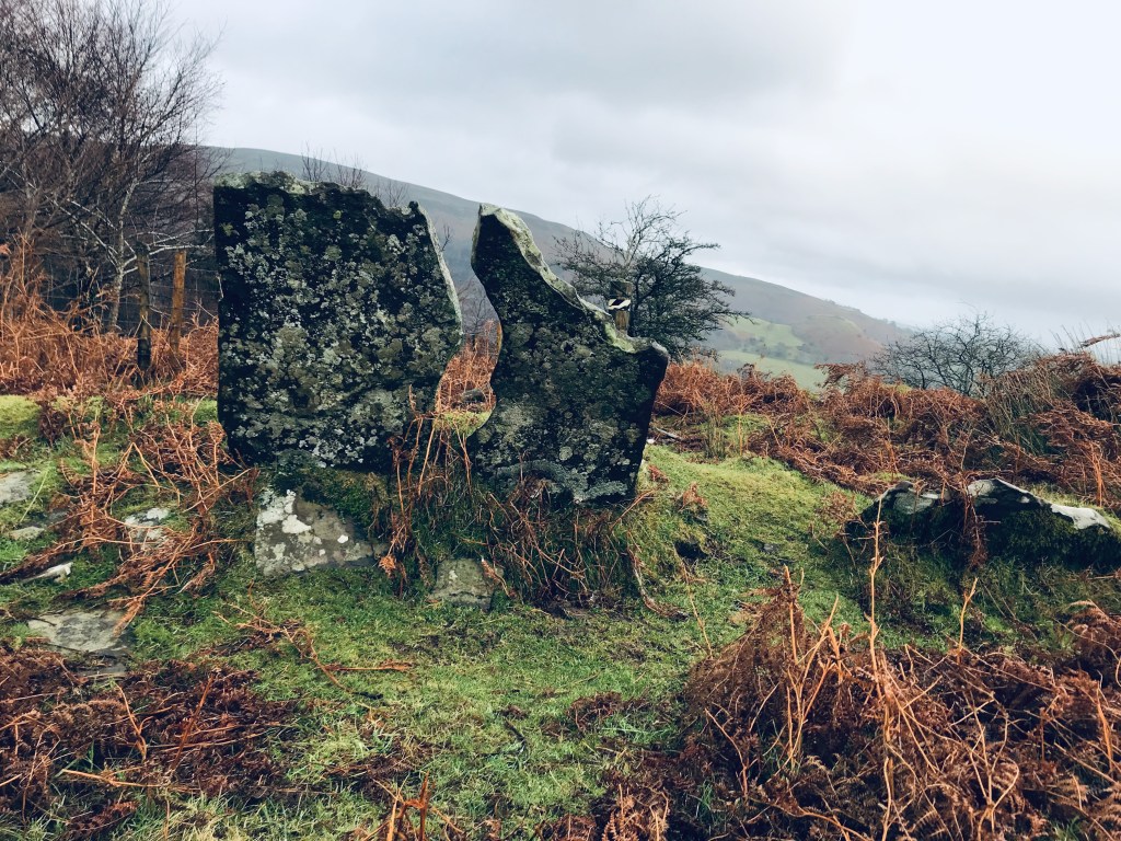 On the Ffwyddog ridge stands Dial Garreg, the stone of revenge. Here, on 15 April 1136, Richard Fitz Gilbert de Clare and his small retinue were cut down in an ambush led by Morgan ap Owain, Lord of Caerleon, his brother Iorwerth, and their men. De Clare was en route to Ceredigion after returning to Wales in the company of his friend Brian Fitz Count de Wallingford, who held the Barony of Abergavenny. The two men had probably spent the night at Brian’s castle there.