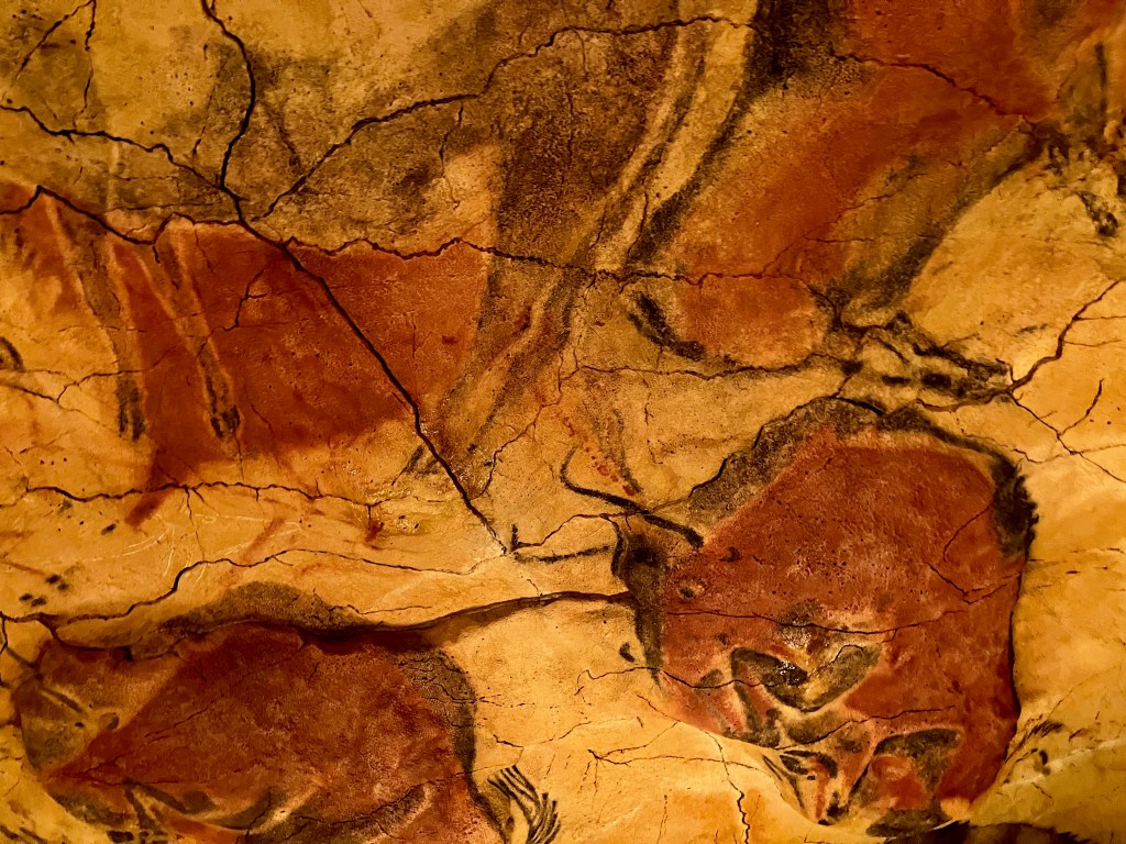 We set out in bright midday sunshine, the storms of last night blown away by the clean Atlantic breeze, and after visiting the museum complex, waited our turn to join the guided tour. Compared with the layout of the Lascaux replica — which copies the descent through the cave in every detail — the Altamira version was spoiled somewhat by the modern gangways and the crowding of one group upon another of visitors. But once we reached them, after a short descent, the effect of the paintings themselves was exhilarating. The ceiling of the reproduction cave is quite low and, of course, we were free to photograph them. I caught a selection of images.