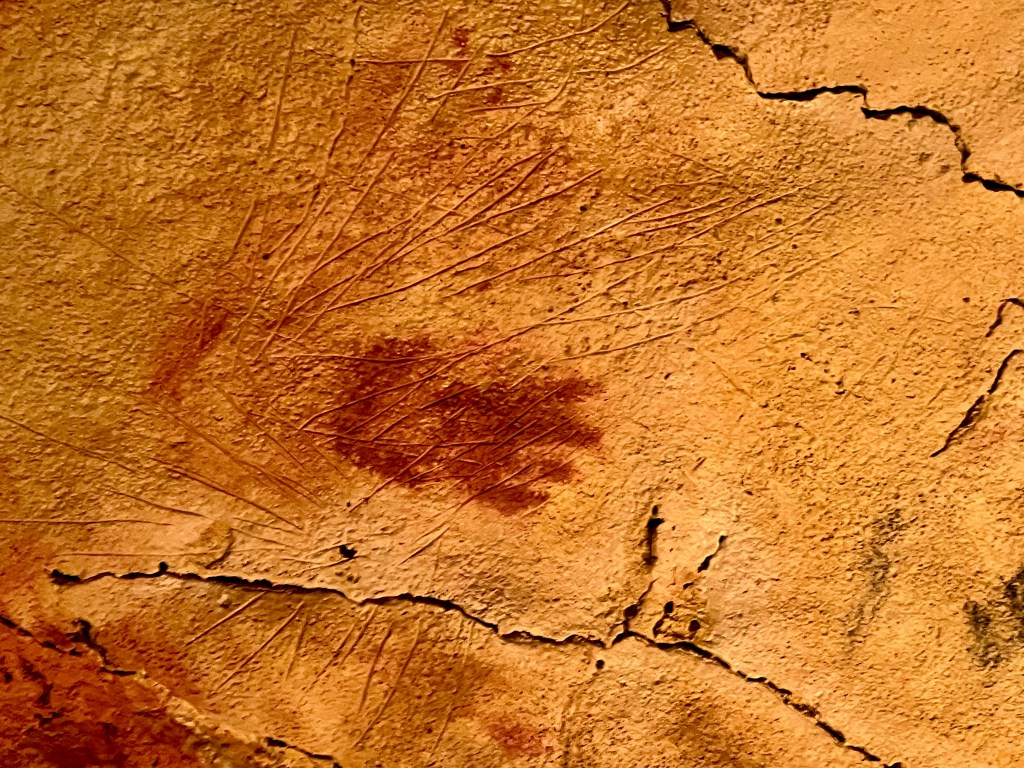 But if one image stays with me from the visit, it is perhaps the single modest hand print that I photographed in the shadows of the cave. I remembered from my visits to other caves, in the south of Spain, how powerfully that image had shaken me. Neanderthals, as well as our human forebears, are known to have made the images of a hand on the walls of their dwelling places, either by placing their palms, sticky with red ochre, on the wall itself, or else spraying the paint over the outline of the hand, as a kind of stencil. It is the image of that hand planted against the rock that haunts me, the earliest creative gesture of a human being that we have on record. A statement of creative intent: here I am.