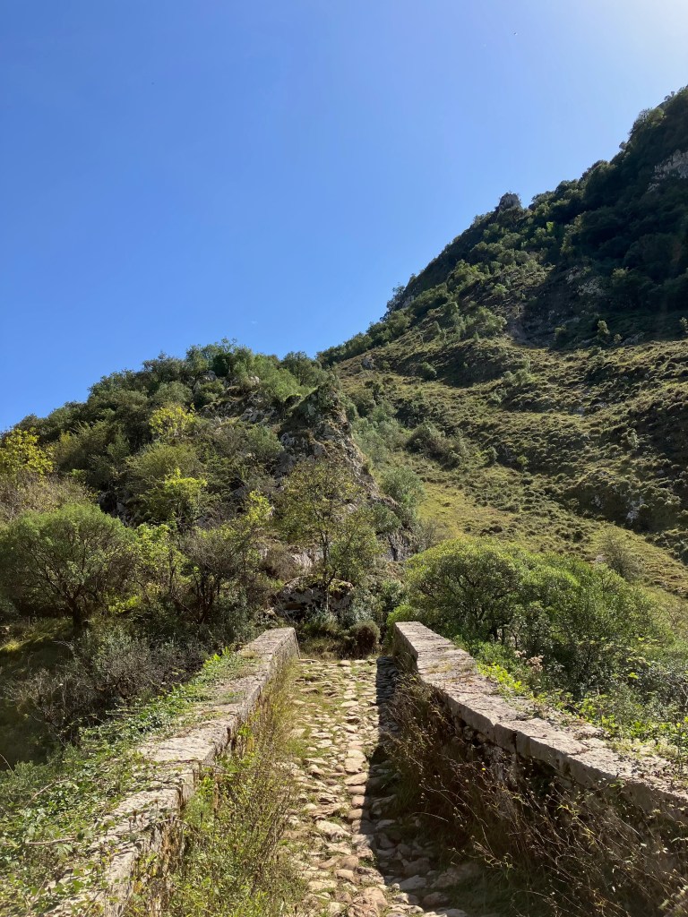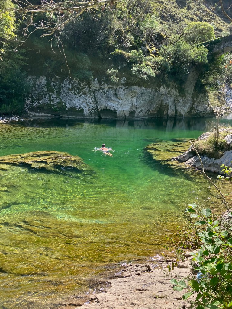 The next morning we set off into Asturias, along a winding mountain road. In search of a picnic spot midway, we happened upon a medieval bridge called Puente La Vidre, which spans the diaphanous waters of the Río Cares. There was no one around and I took an icy swim. Next stop: the Picos de Europa and Covadonga.