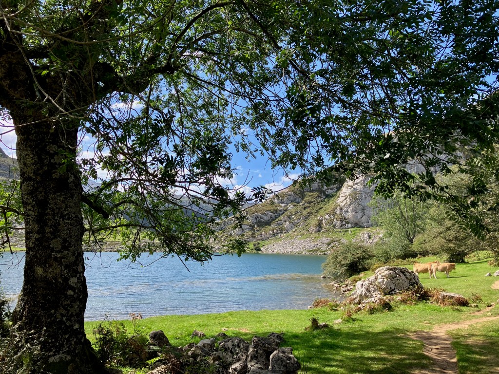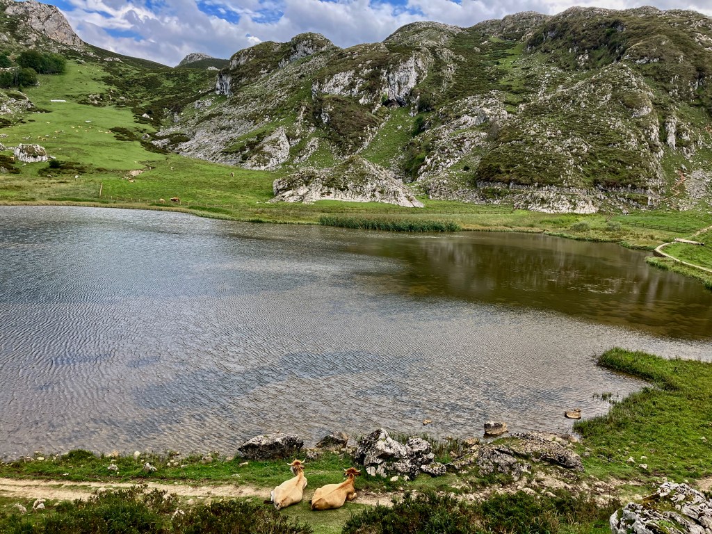 The road snakes up the mountainside above Covadonga towards the lakes of Enol and Ercina. A pair of eagles glide in slow synchrony against the infinite expanse of blue framed by the window of the bus. Access to the lakes is limited during much of the year, and private cars are not permitted during those times, which, given the precariousness of the road, might not be such a bad idea. A coach toppled off the road on 31 July this year causing serious injury to several of those on board (fortunately, no one died) when the vehicle made way for a passing car.
