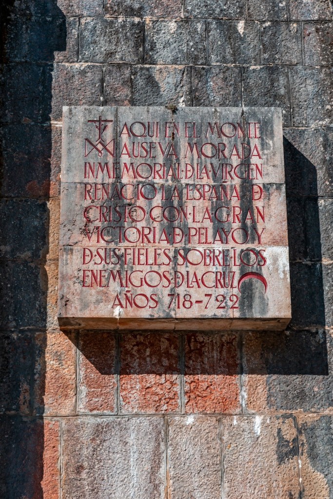 For example, on the way into the sacred cave, a marble plaque reminds us that the Holy Virgin is like a mother to the nation, and that this place is the cradle of Christian Spain. Below the cave, on a huge engraved block of granite, we find the words celebrating ‘the great victory of Pelayo and his Faithful over the Enemies of the Cross’. And who, we might ask, are the ‘Enemies of the Cross’ today? No doubt, Santiago Abascal and Vox provide an answer to that, pursuing, as they do, Islamophobic policies, and more specifically, of halting immigration, most especially of Muslims from the Maghreb.