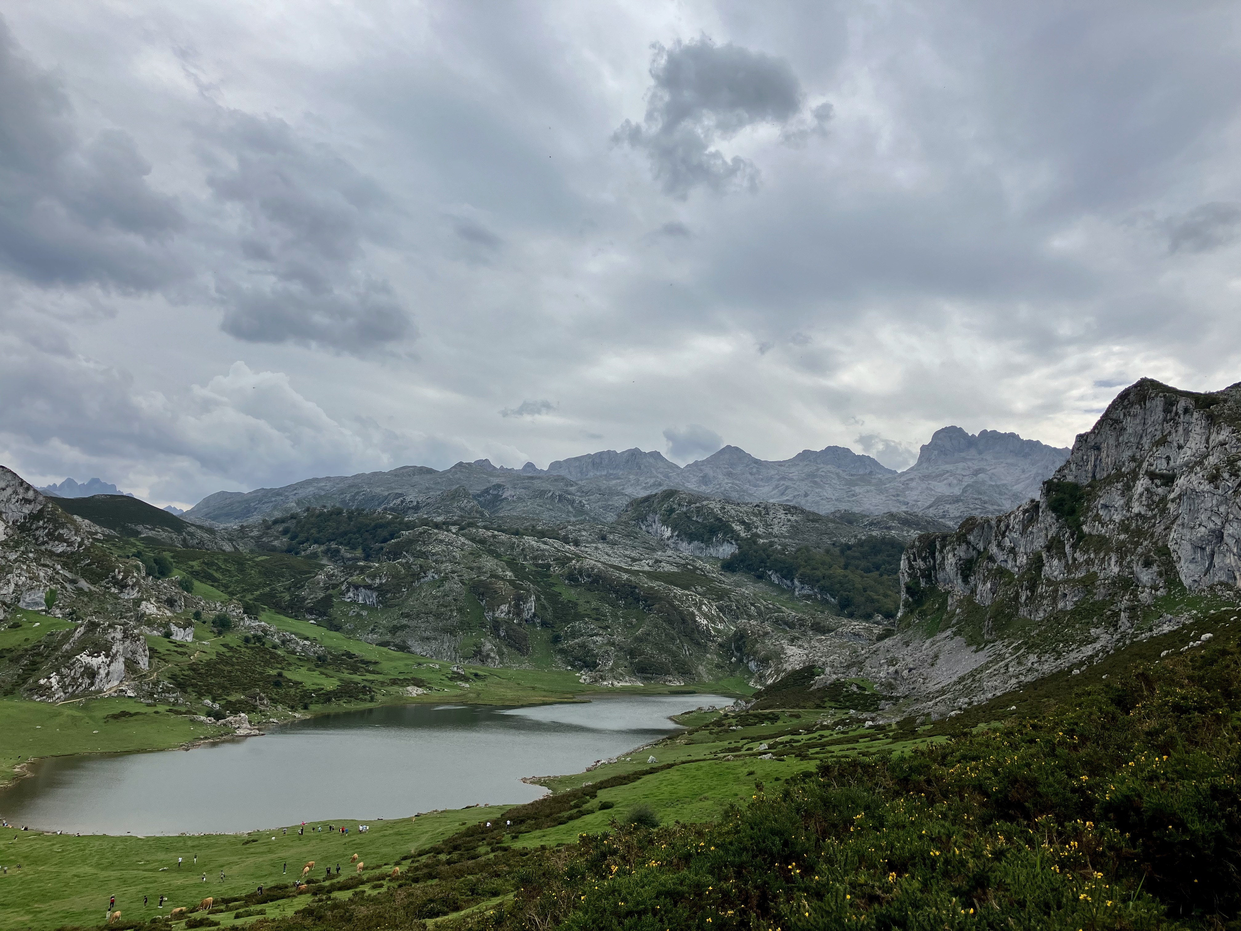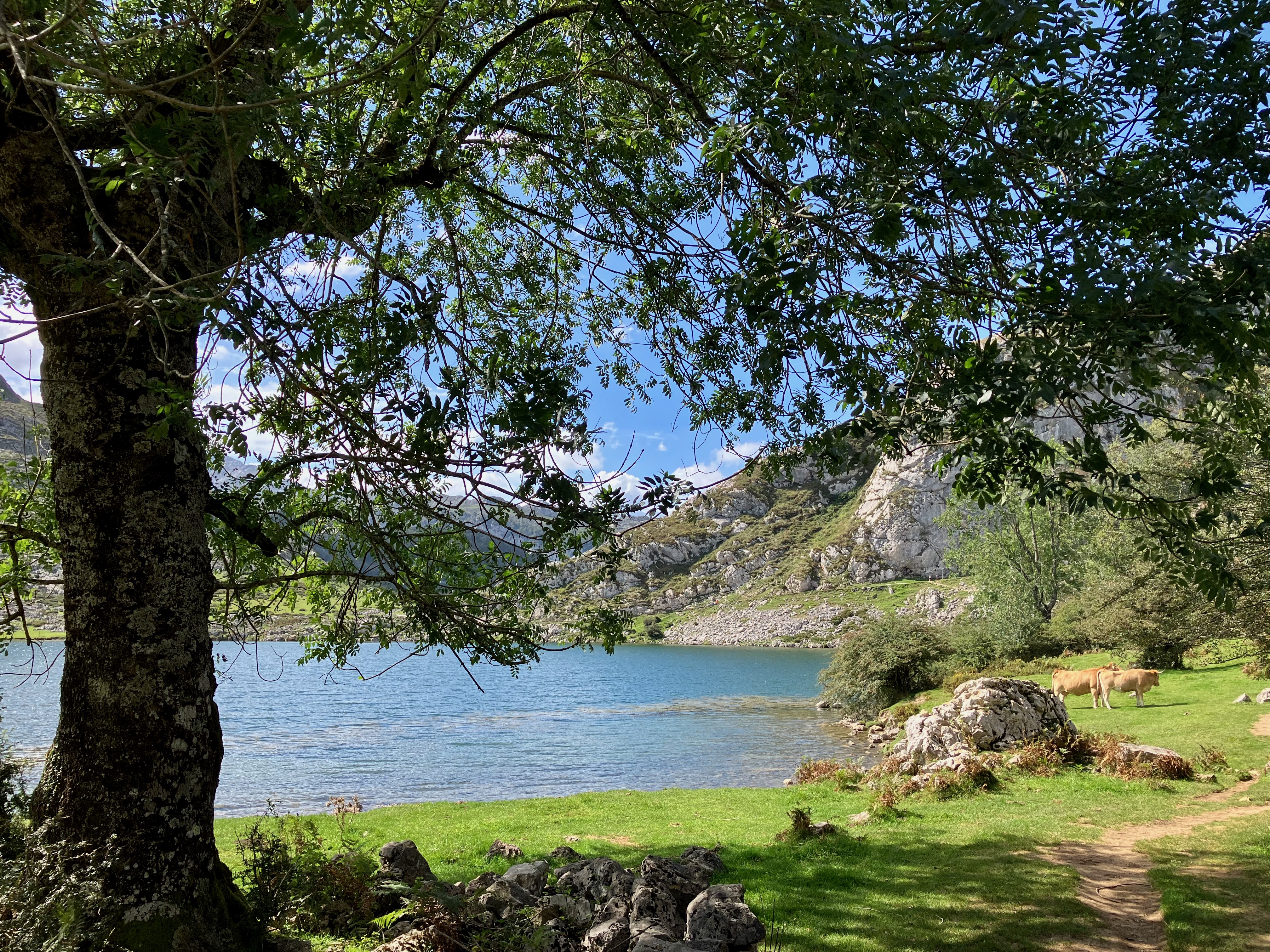 The road snakes up the mountainside above Covadonga towards the lakes of Enol and Ercina. A pair of eagles glide in slow synchrony against the infinite expanse of blue framed by the window of the bus. Access to the lakes is limited during much of the year, and private cars are not permitted during those times, which, given the precariousness of the road, might not be such a bad idea. A coach toppled off the road on 31 July this year causing serious injury to several of those on board (fortunately, no one died) when the vehicle made way for a passing car.