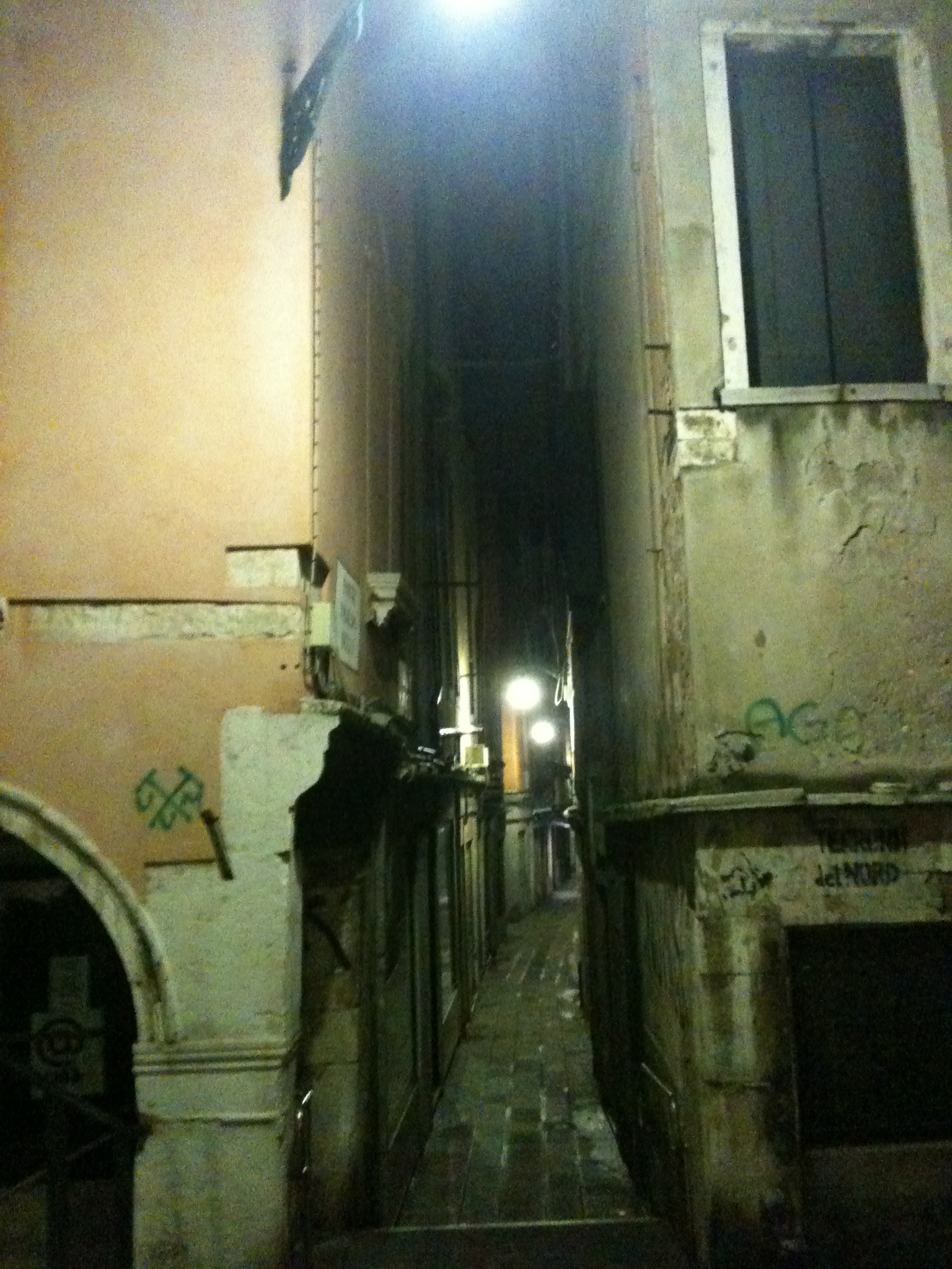 Here you are in the cerebral cortex, one fictional street leading into another campo of the imagination, the calli lined with deceit, each turning an extenuating circumstance into an invasion of the blind. No rabbit holes, no fox dens here, only the supercilious scrutiny of the gulls, and an exhausting labyrinth in which one false turning leads to another, and you have entered an unknown place where the sun has no welcome. You take another turning, glance at the name of the alley which bears no relation to the name on your or any other map, continue with a sense of desolate determination, long ago having lost all sense of your eventual destination, only to come across it unawares, as though the city had ensnared you, laid an ornate trap. You are forever the victim of your own confidence in finding the way. You propose a direct route – according to the map, of course – only to find that the phenomenal agglomeration of stone and water gets in the way, and you appreciate once again that the map describes instead a fictional version of the island, a kind of alternative city, one of many. Later, seated by a canal, staring at the reflection of the water on the side of an illuminated building, you come to another understanding; that what is being described in all these false turnings, dead ends, abrupt descents to water, intended paths, projected destinations, humorous asides and double bluffs, is a map of yourself, or of anyone else you care to name, and the city you are attempting so desperately to navigate likewise remains unknowable.
