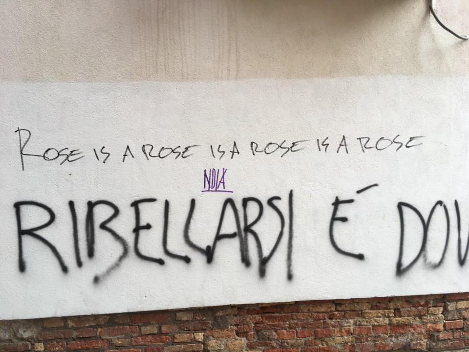 It is cold in Venice. I arrive late at night and go straight to bed. In the morning a mist hangs over the city when I go for my coffee at the corner café. Outside, a small white dog chases a blue ball around in circles. I see a derelict man, sitting hunched over on the bench in the nearby square. There are not many rough sleepers in Venice, in fact there is not normally a vast number of beggars. I sit down on the bench. The man asks me for money. He has a somewhat battered appearance. I give him some coins. He gets up and leaves, but returns a few minutes later with a bottle. He offers me a drink, which I decline. It occurs to me that he is a character in a story I didn’t write, about a man who achieves most of the things that matter to him, then loses interest in them and goes to Venice and is reduced to sleeping rough: I could even tell him – if he were interested, which I rather doubt – that he is living my life in reverse. But I think better of it. He might not take it well. Besides, the morning mist is beginning to lift and the man is telling me an incredibly long and convoluted story about how he once achieved almost everything he set out to achieve, but then lost interest in his life, and came to Venice, but he tells the story in such a drab and uninteresting way that I drift off, begin thinking of other things, such as what I might do with the day now that the mist has lifted, and then he says something about living my life in reverse – ‘it’s as though I were living your life in reverse,’ he says, or I think he says, as I stare at some graffiti on a wall facing me: ‘Rose is a Rose is a Rose’ – and when I turn to reply to the man on the bench next to me, he is gone.