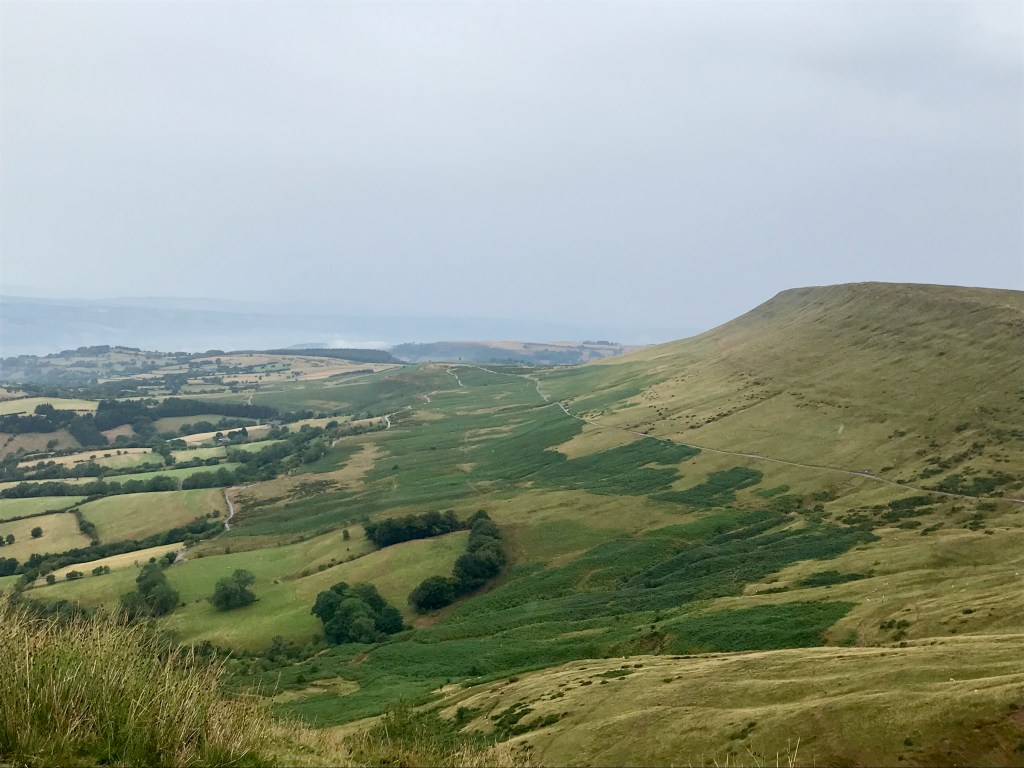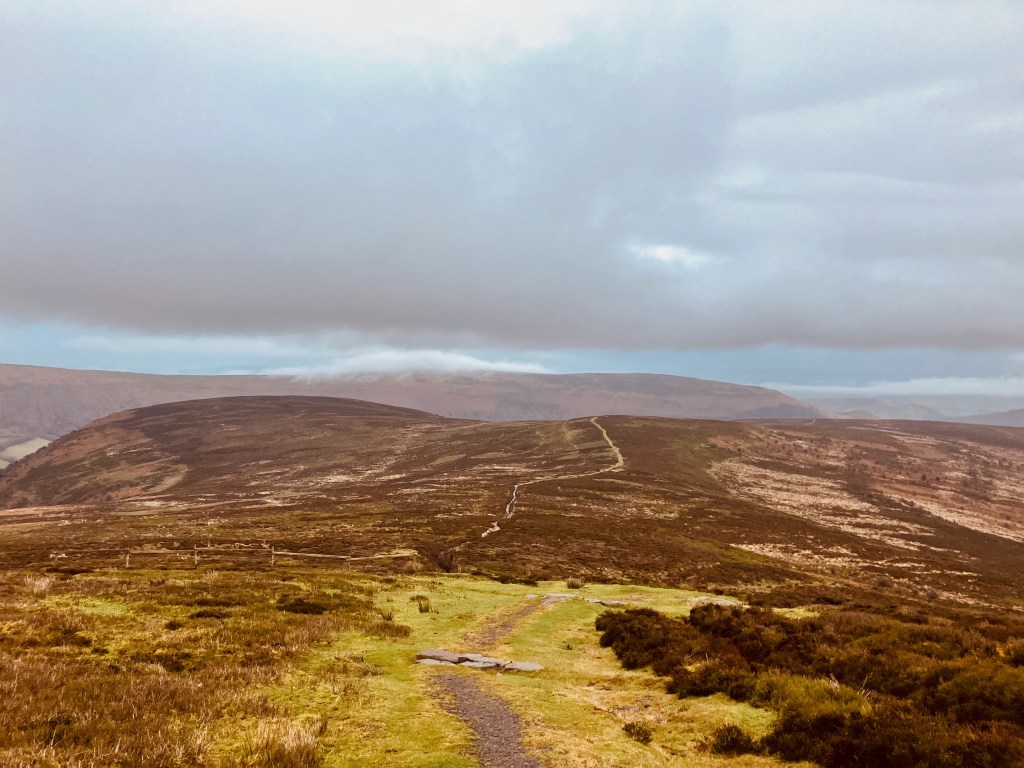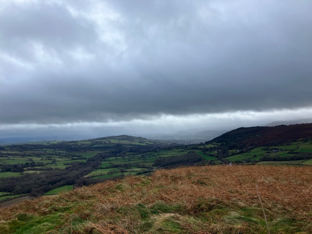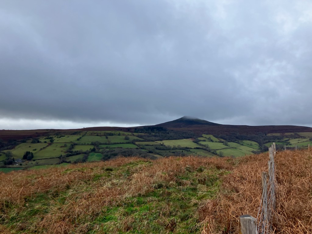 I walked Bryn Arw for the very first time last Christmas Eve. It turned out to be the windiest of days, and I set out along with a few family members and a borrowed dog, a scruffy but amiable mutt named Bluey. We all needed to get out of the house before Christmas indolence melted our brains. First we hugged the lower reaches of Pen-y-fal, or the Sugar Loaf, before turning east and climbing to the long ridge of Bryn Arw. Here we were so buffeted by the southwesterly wind that it felt almost as if the next gust might lift our bodies from the ground and drive us high into the air, depositing somewhere in the green fields of Herefordshire.