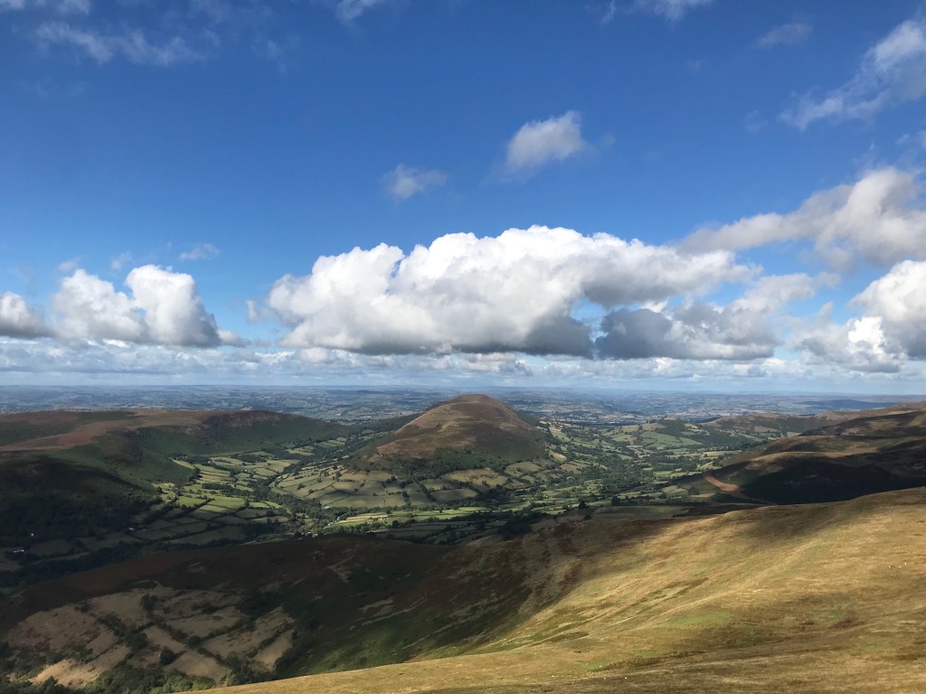 This was all running through my mind last Friday when I walked up above Cwm Banw, following the ridge from Pen Twyn Glas, up to Pen Allt Mawr, Pen Cerrig Calch and down towards Crug Hywel or the Table Mountain. It was a late summer or perhaps an early autumn day with a strong breeze and some interesting clouds.