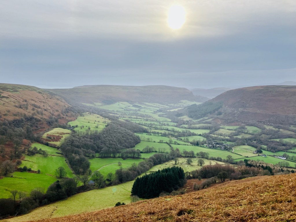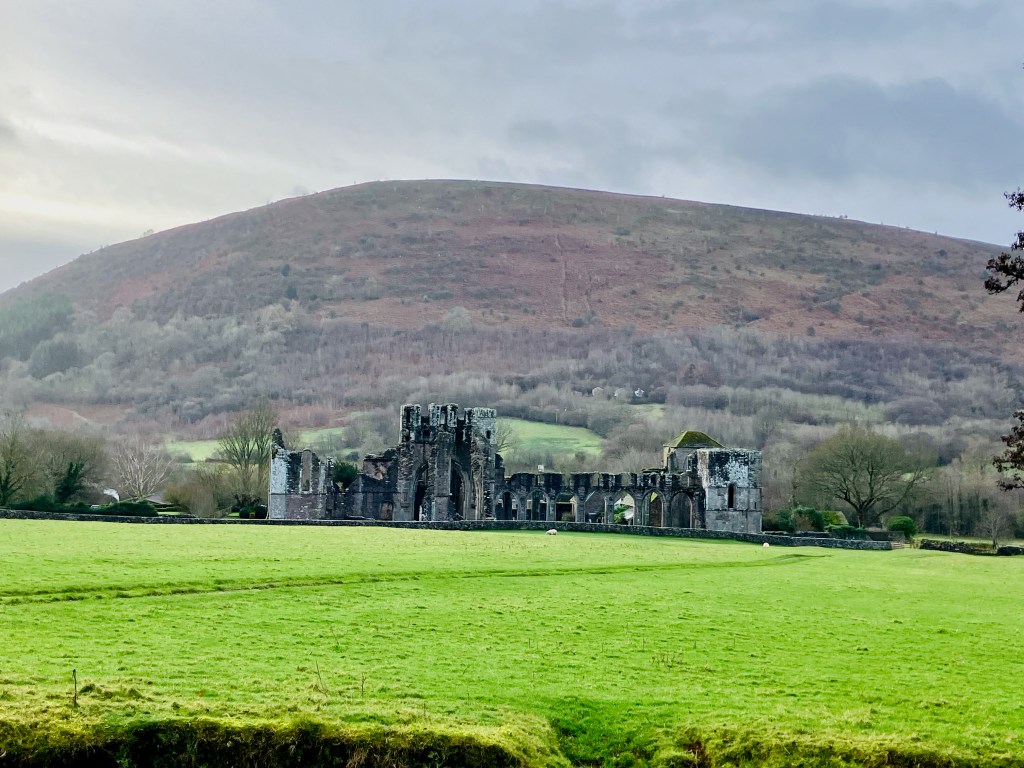 So, on a January morning in 2024 — the first day of the new year on which it is not pelting with rain — I set off on a circular walk from Llanthony Priory. My plan is to climb up to the Offa’s Dyke trail, follow it for a couple of kilometres, turn west down the steep track towards The Vision farm, take a right along the lane to Capel y Ffin, climb to the Ffawyddog (which separates this valley from Cwm Gwyne Fawr) and follow the ridge down to Bal Mawr and thence down Cwm Bwchel, back to Llanthony. Twelve miles, give or take. Six hours including picnic lunch and stops.