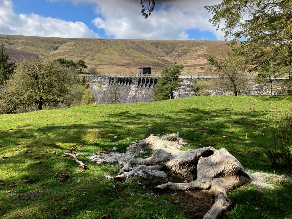I set off along the narrow gravel path that now defines the crest of the Ffawyddog, turning off at a diagonal (10 o’clock) to the left to pursue the boggy track down towards the reservoir. Near the dam lies the sad, excavated remains of a young pony, a common enough sight hereabouts.