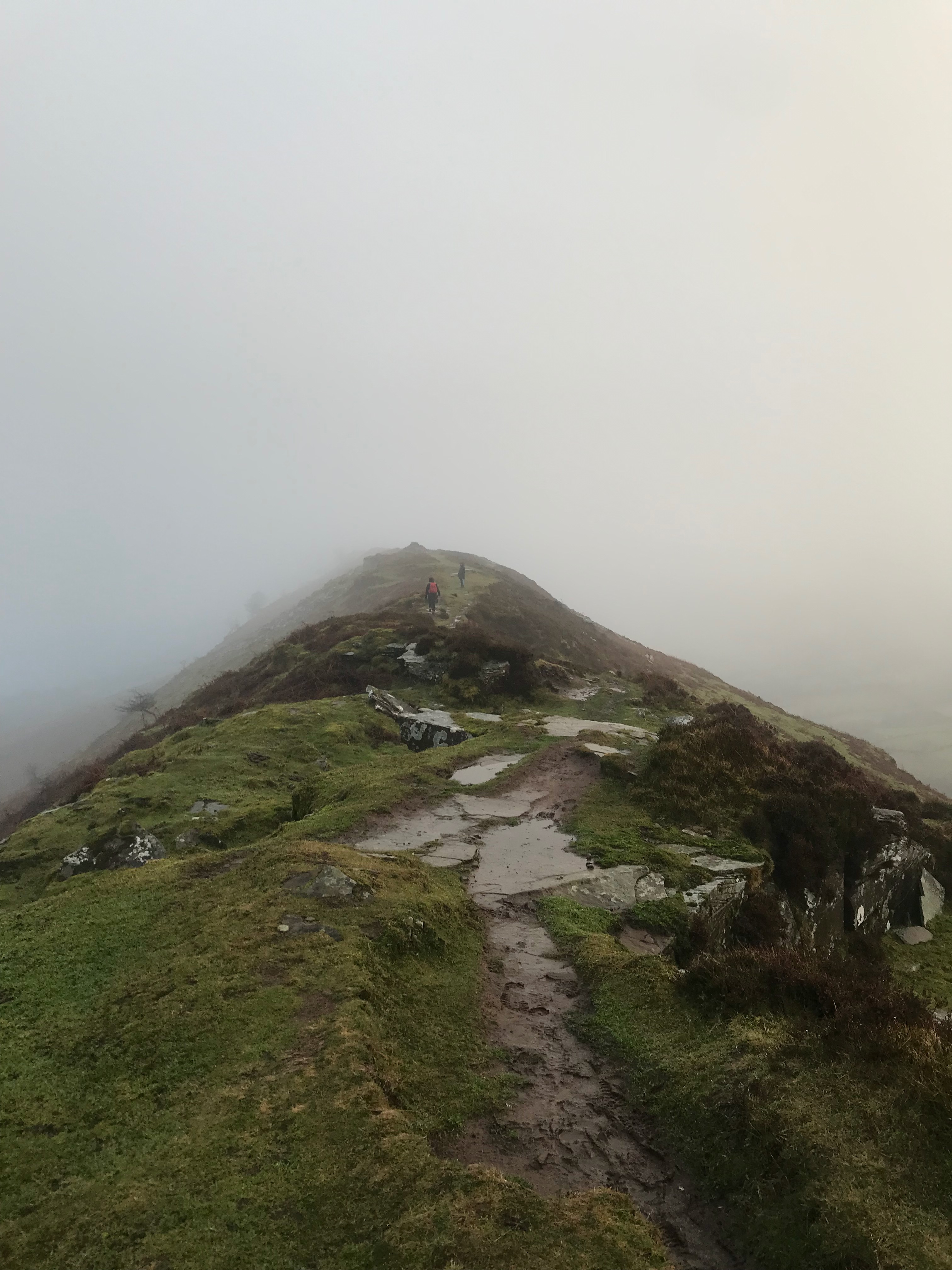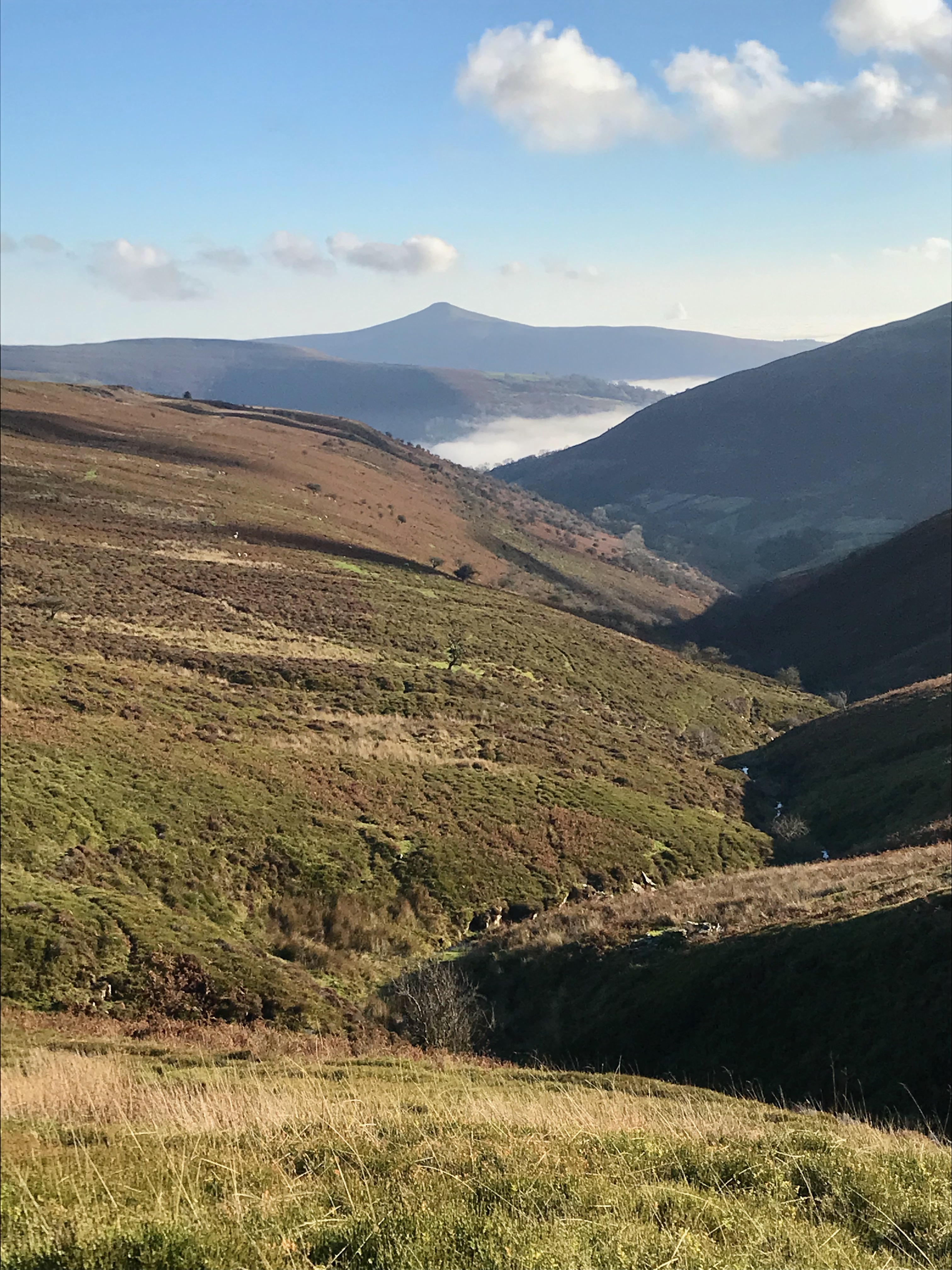 I walked Bryn Arw for the very first time last Christmas Eve. It turned out to be the windiest of days, and I set out along with a few family members and a borrowed dog, a scruffy but amiable mutt named Bluey. We all needed to get out of the house before Christmas indolence melted our brains. First we hugged the lower reaches of Pen-y-fal, or the Sugar Loaf, before turning east and climbing to the long ridge of Bryn Arw. Here we were so buffeted by the southwesterly wind that it felt almost as if the next gust might lift our bodies from the ground and drive us high into the air, depositing somewhere in the green fields of Herefordshire.