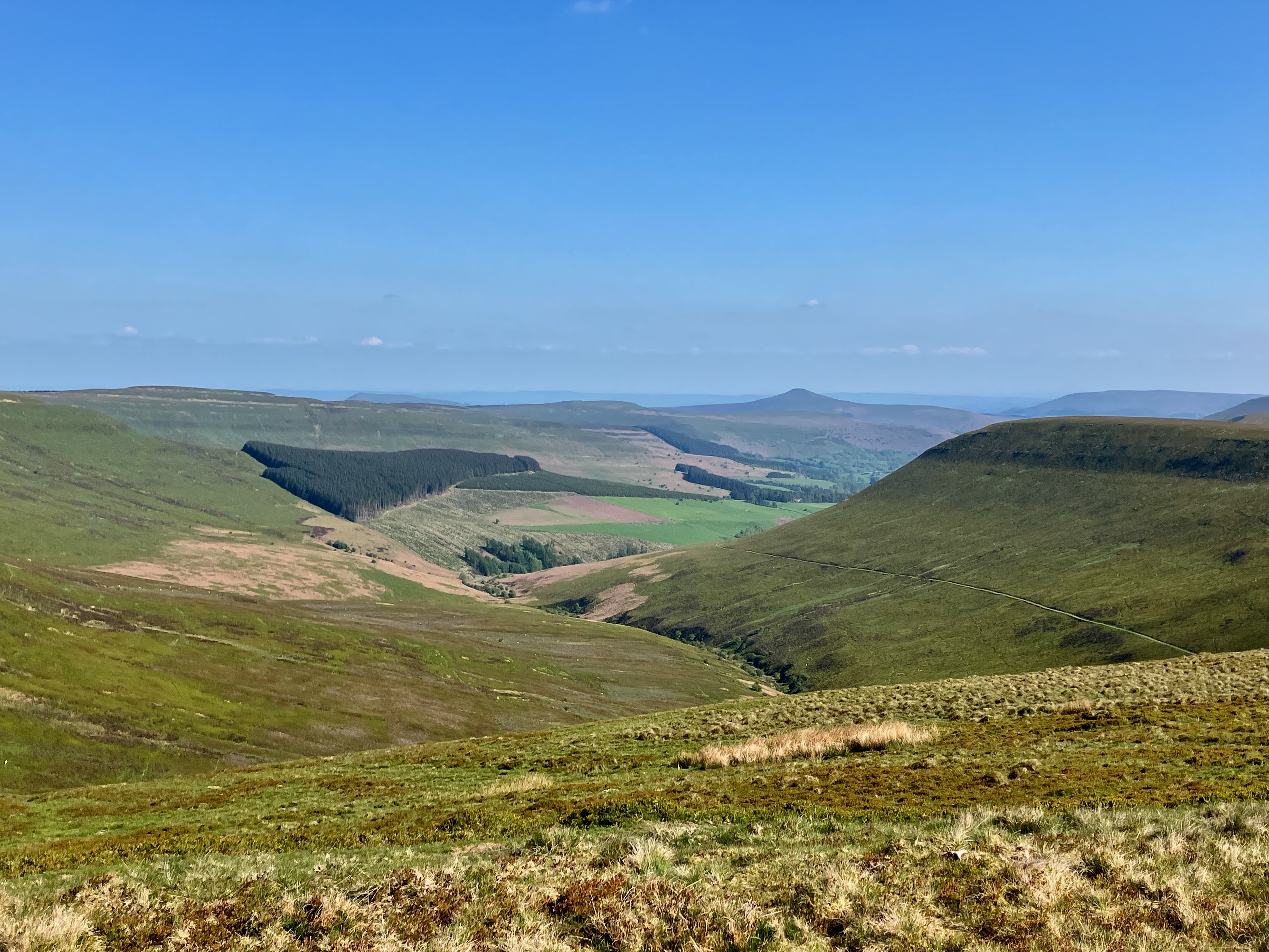 The descent from Pen Twyn Glas in the late morning sun is breathtaking, and there is the sublime joy of looking down over Cwm Banw to the right, and ahead to Pen y Fal. Quite why Cwm Banw and the Grwyne Fechan valley affect me in this way I cannot say, but I have an allegiance to the zone that feels arcane, ancestral, a thing of the blood. It is a passion I share with at least a few others. T.J. Morgan, a young University lecturer in Welsh, recalled his first visit to the Grwyne Fechan valley in January 1939, after a heavy snowfall, in tones of mystical reverence. The visit is recounted by his son, Prys Morgan, in the annual journal Brycheiniog and can be found in the back issues section, Volume 51 (2020) on pages 136-41.